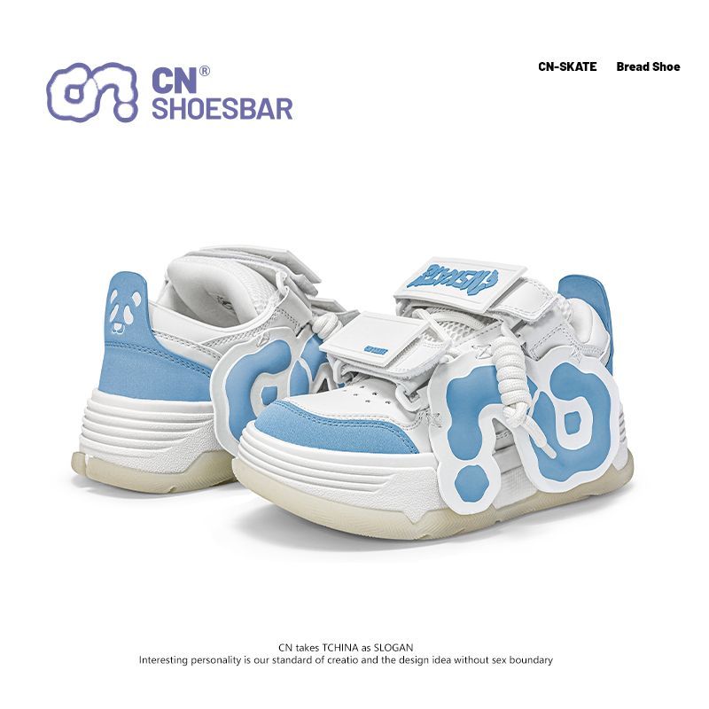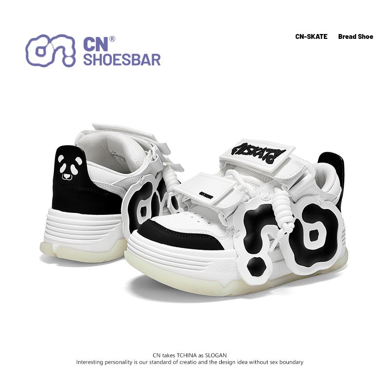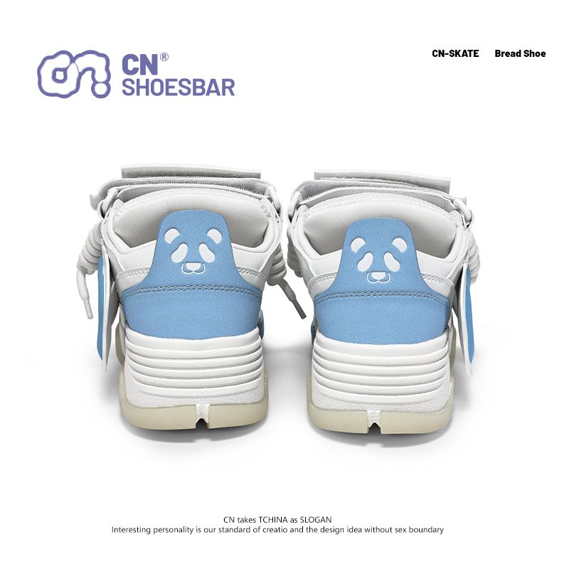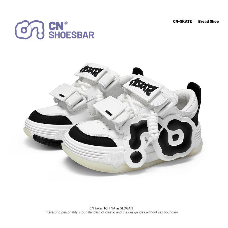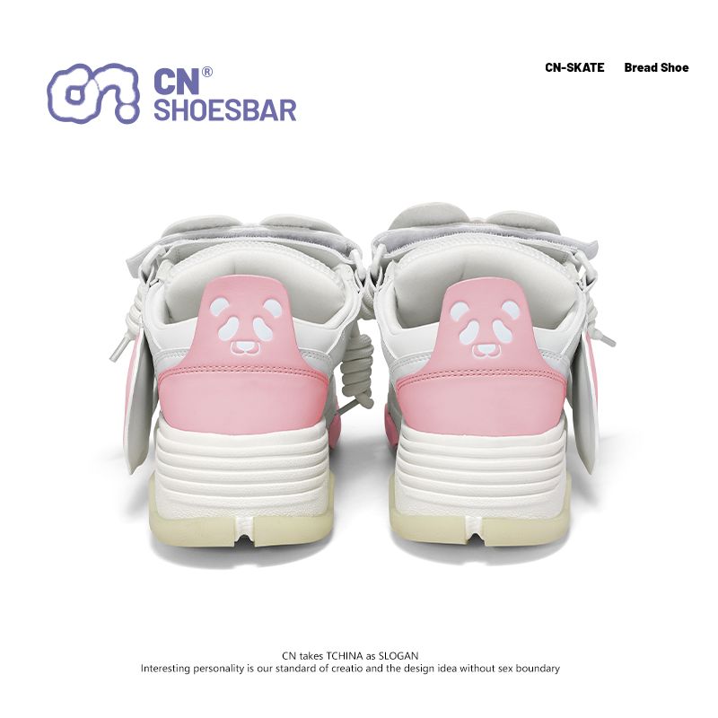 1: Free DIY Velcro, rounded toe design, cute panda intaglio on the heel, large three-dimensional logo on the side, echoed with the logo on the sole, graffiti design insole, full of details and design, full of Q cute sense of fun.