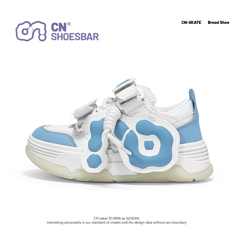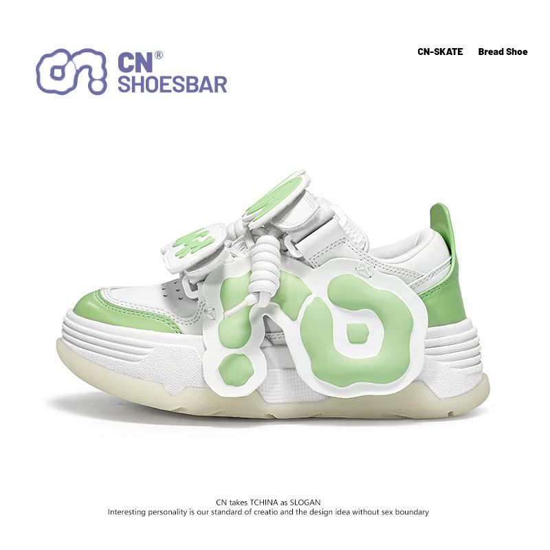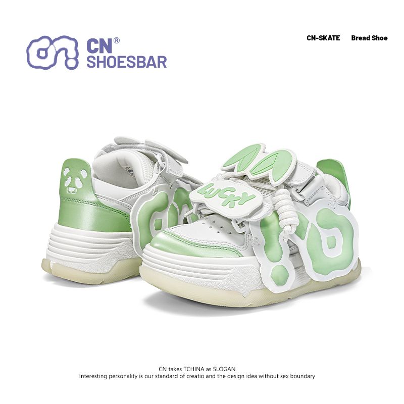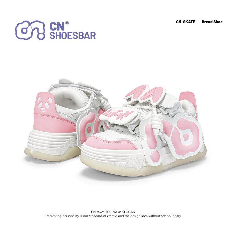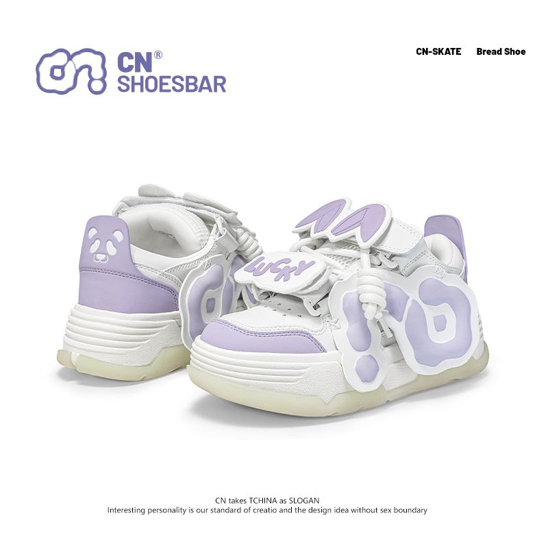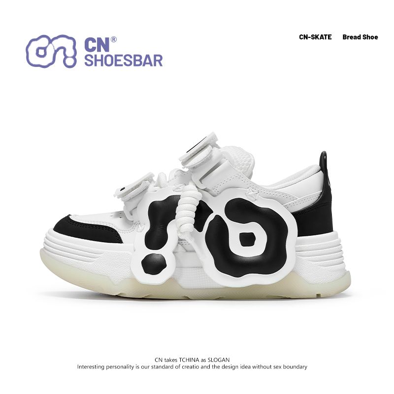 1: Free DIY Velcro, rounded toe design, cute panda intaglio on the heel, large three-dimensional logo on the side, echoed with the logo on the sole, graffiti design insole, full of details and design, full of Q cute sense of fun.